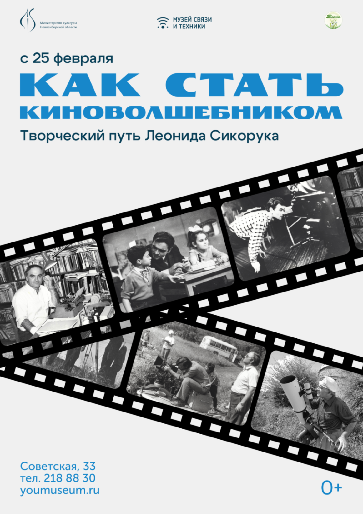 25 февраля в Музее связи и техники (Советская, 33) открывается выставка «Как стать киноволшебником», посвящённая творческому и жизненному пути выдающегося человека. Начало в 12 часов. Учёный и конструктор телескопов, кинорежиссёр и педагог, обладатель звания «Человек года» и Почётный гражданин города Новосибирска, его имя носит малая планета. Всё это наш земляк – Леонид Леонидович Сикорук.