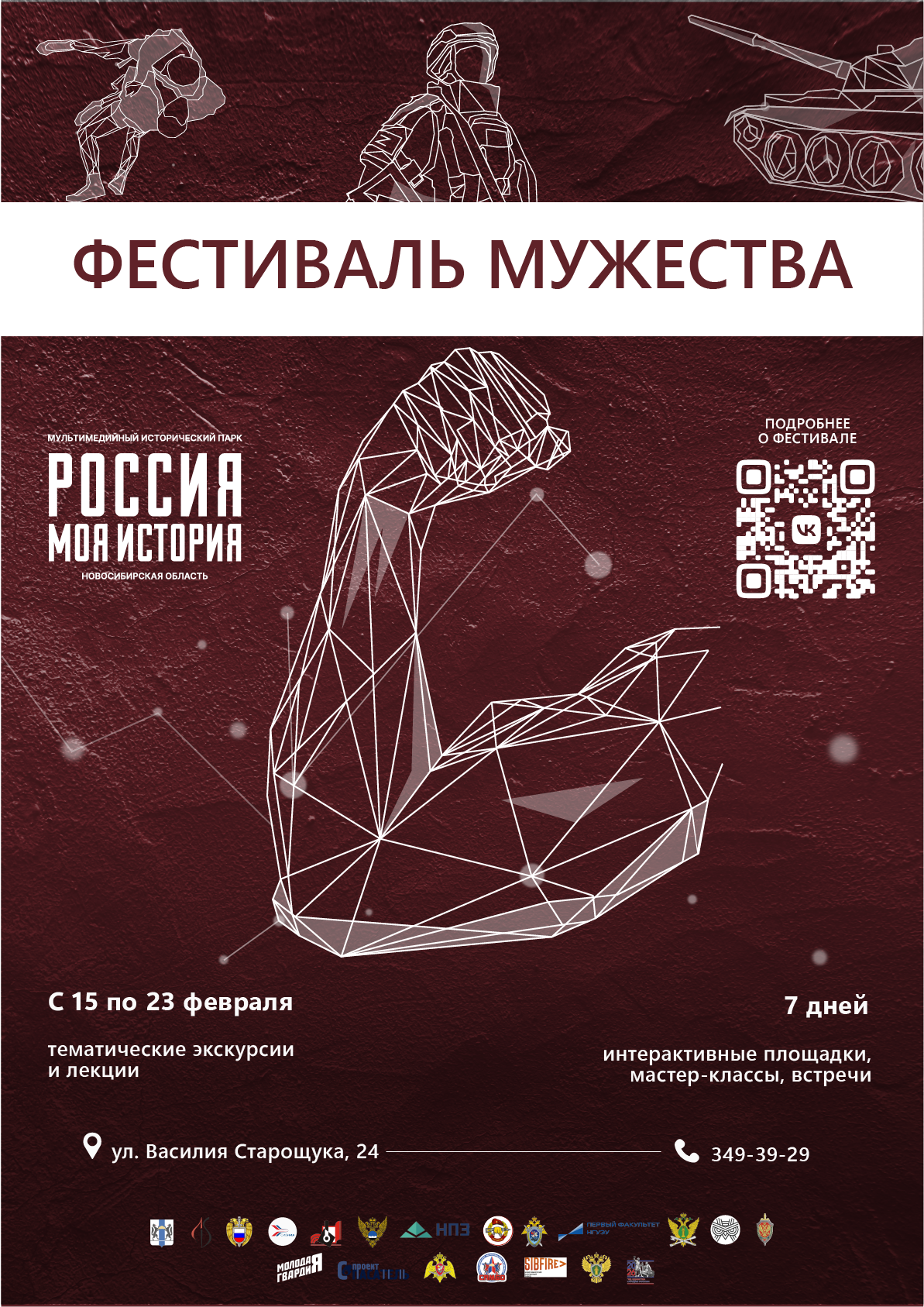 В 2026 году «Фестиваль Мужества» посвящён Дню памяти россиян, исполнявших служебный долг за пределами Отечества, 85-летию начала Великой Отечественной войны и 10-летию Федеральной службы войск национальной гвардии Российской Федерации. На фестивале будут представлены тематические площадки партнёров, мультимедийные и комплексные выставки, пройдут патриотические лекции, мастер-классы по самообороне и оказанию первой помощи. Гости мероприятия смогу познакомиться с деятельностью следующих организаций: