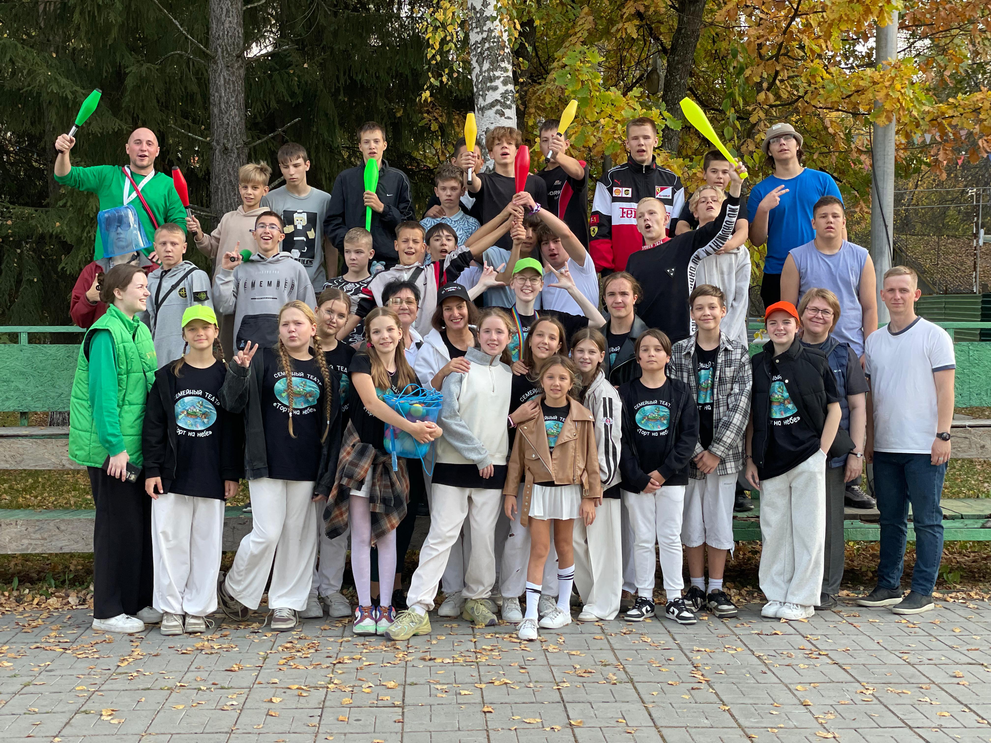 Это был прекрасный опыт сотрудничества как для воспитанников театральной студии «Торт на небе», так и для многих подростков, которые впервые соприкоснулись с театром. Мы увидели в их глазах живой неподдельный интерес. У многих раскрылись невероятные способности к жонглированию, к исполнению сложных трюков на скакалках.