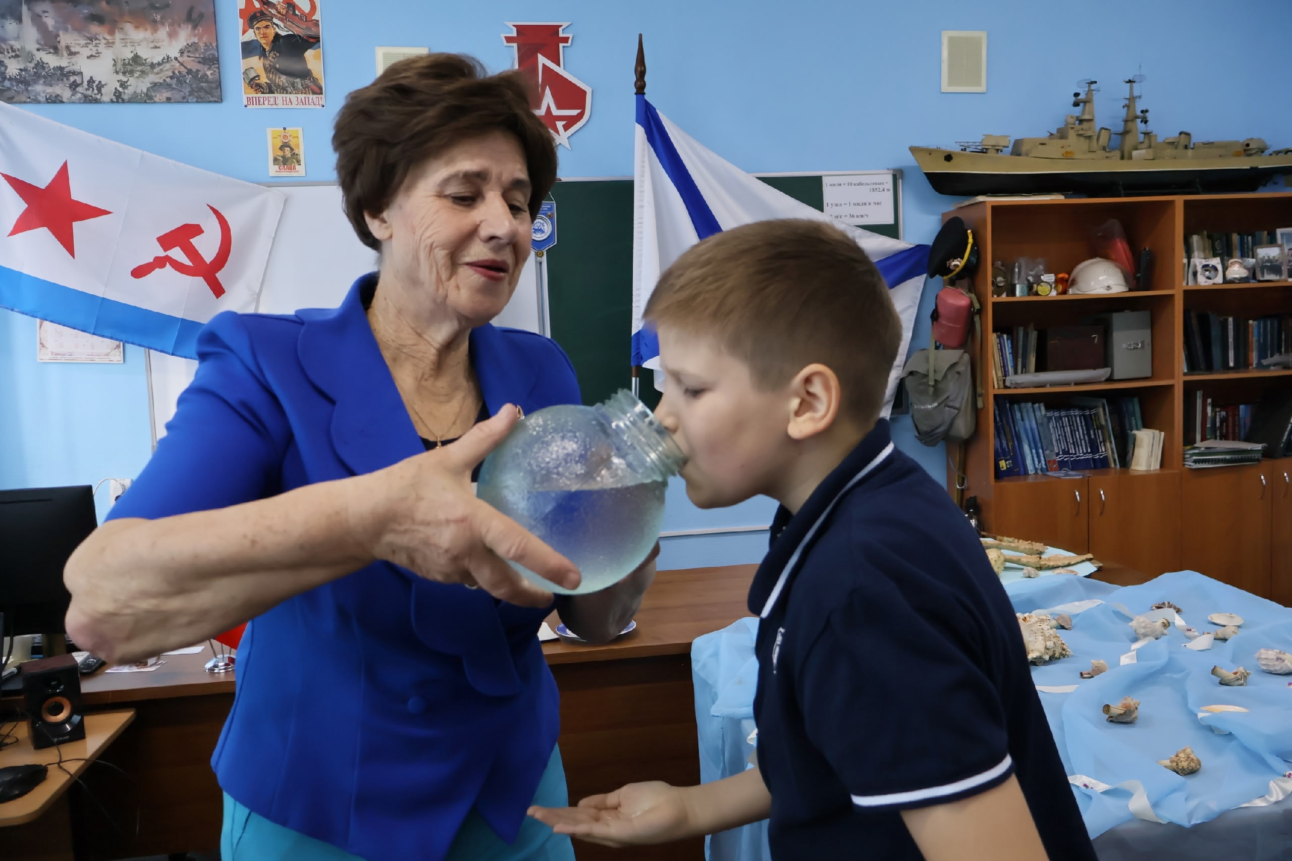 – «Станция Морские россыпи». Здесь ребят ждало особое испытание. Им предстояло отгадать загадки Нептуна, а затем пройти посвящение морской солью и водой из корабельного плафона, как в старой доброй флотской традиции.