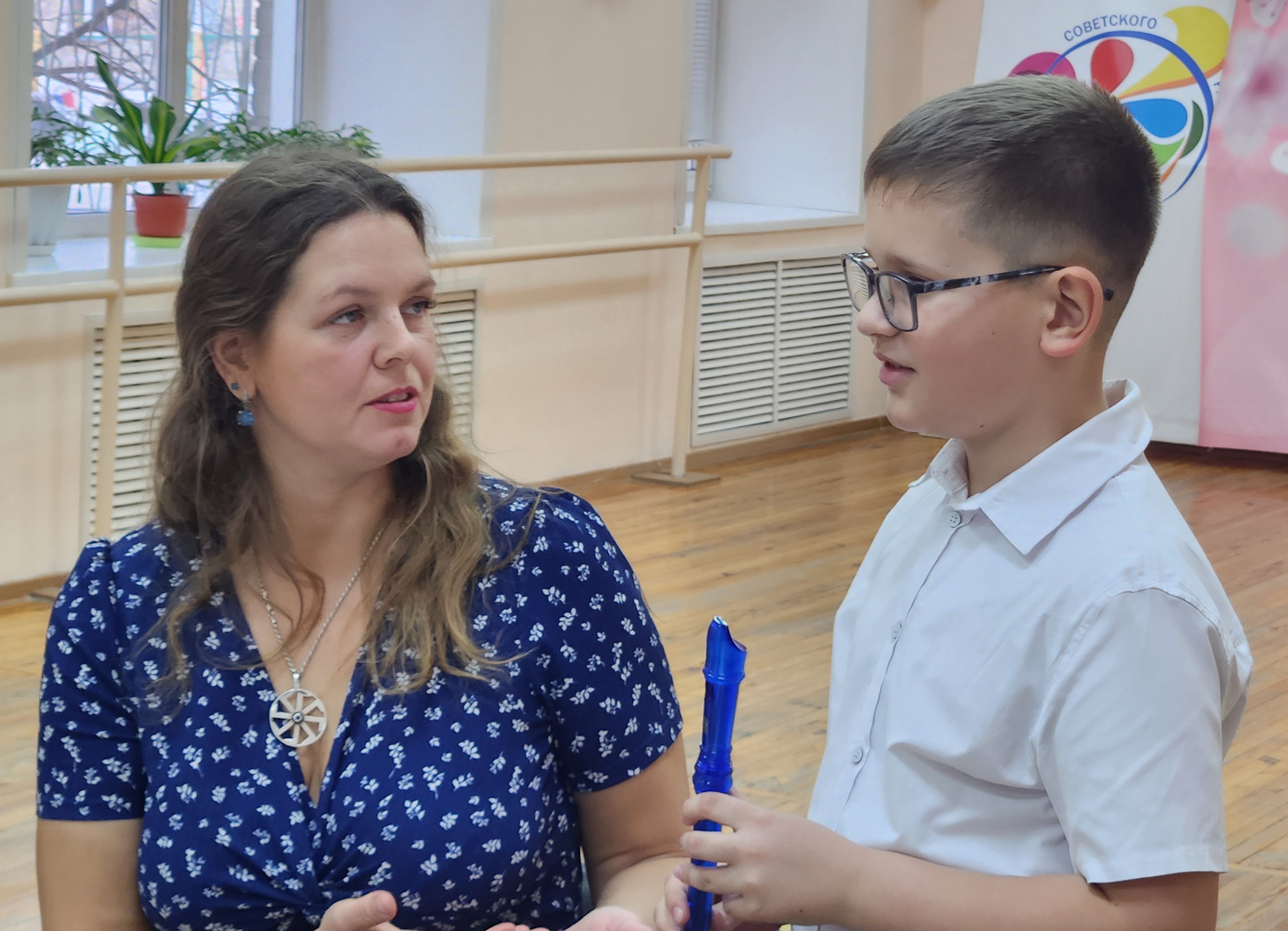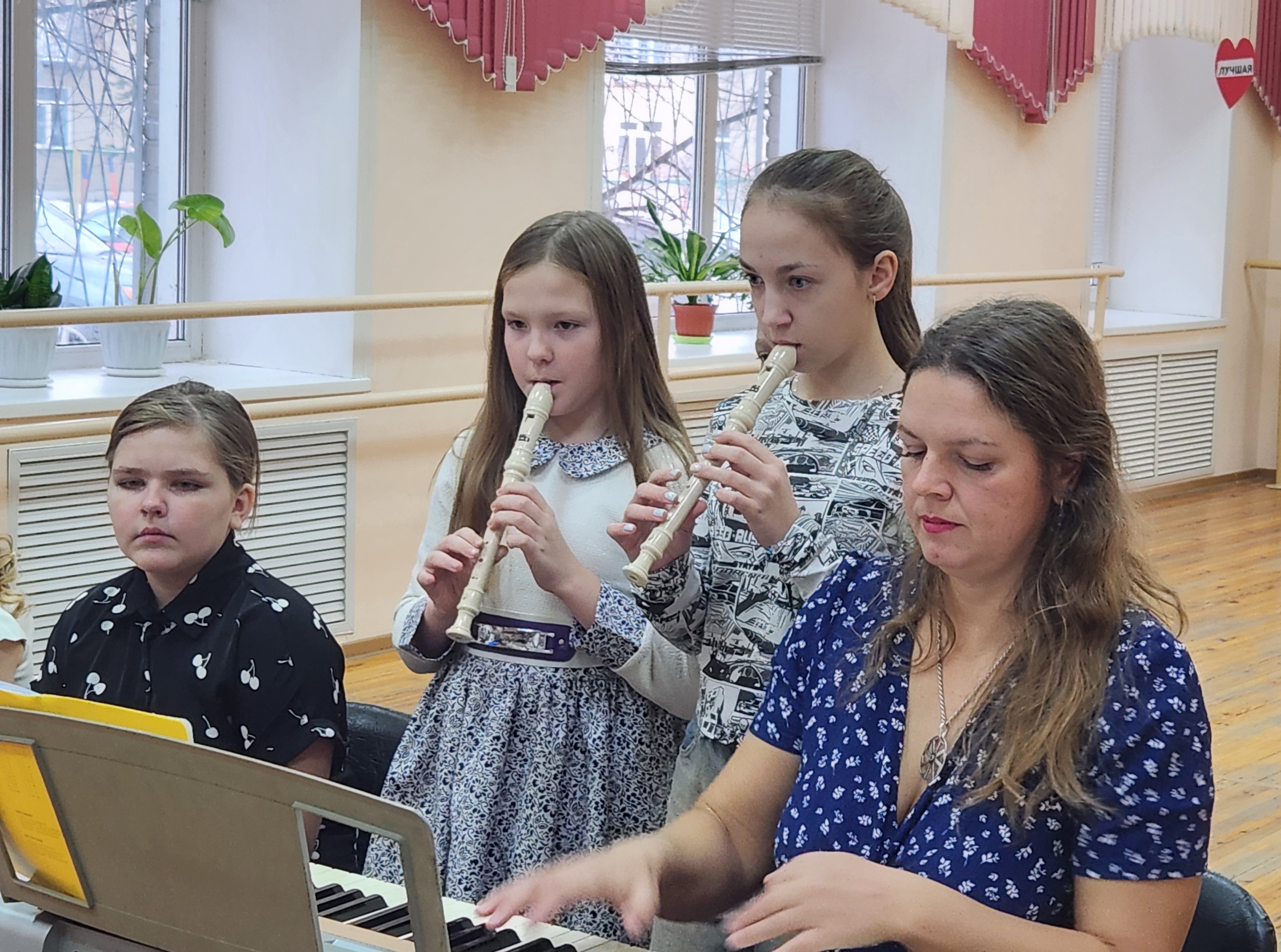Руководитель детского объединения «Растущее сияние» Екатерина Владимировна Лагуткина собрала в праздничном зале своих учеников, их родителей, братьев и сестричек. Встреча была наполнена любовью и нежными звуками различных музыкальных инструментов, царила поистине семейная и трогательная атмосфера.