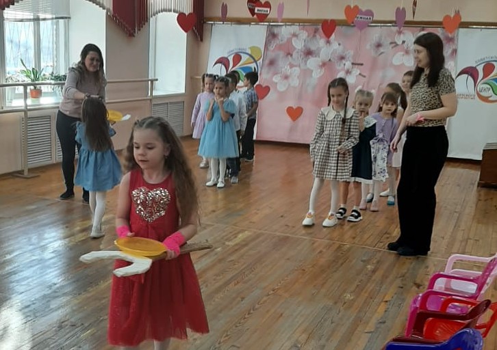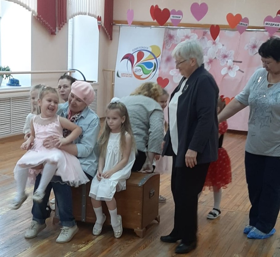Н. Г. Самойличенко, словно дирижер оркестра хорошего настроения, объявила первый конкурс – вокальный! Мамы, будто гадалки, отрывали лепестки от ромашки, выбирая слова из детских песен, а затем весь зал сливался в едином хоре, распевая о дружбе, улыбках, о солнце. Второй конкурс – театральный – превратил сцену в калейдоскоп эмоций. Мамы и дети, как талантливые актеры, проживали радость, грусть, нежность и многие другие чувства. Весело искрились глаза малышей в игре с бабушками «Кто быстрее займет сундук под музыку». А затем мамы продемонстрировали свою ловкость в конкурсе «Не урони блины».
