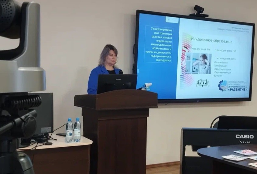 О благотворном влиянии музыки на детей с ограниченными возможностями здоровья в коррекционной работе, о положительной динамике в развитии и социализации данных обучающихся рассказала в своём выступлении Ирина Станиславовна Щебетун, учитель МАОУ Центр образования № 82 «Развитие».