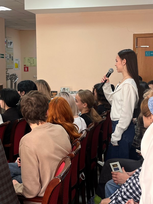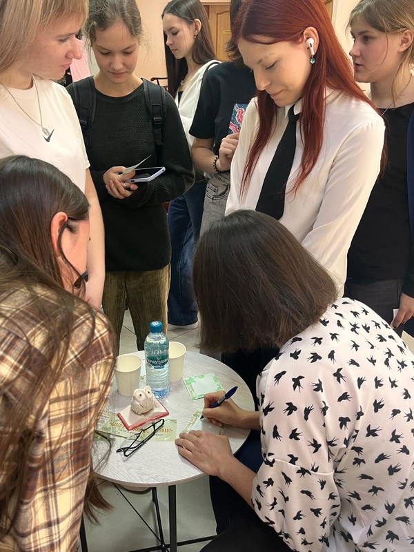 Встреча собрала студентов отделения социально-культурной деятельности, декоративно-прикладного и библиотечно-информационного отделения. Зрители проявили высокую активность, задавали глубокие и интересные вопросы, были вовлечены в диалог в полной мере. По окончании официальной части они аплодировали стоя, а также получили автографы писательницы и тематические призы за заданные вопросы.