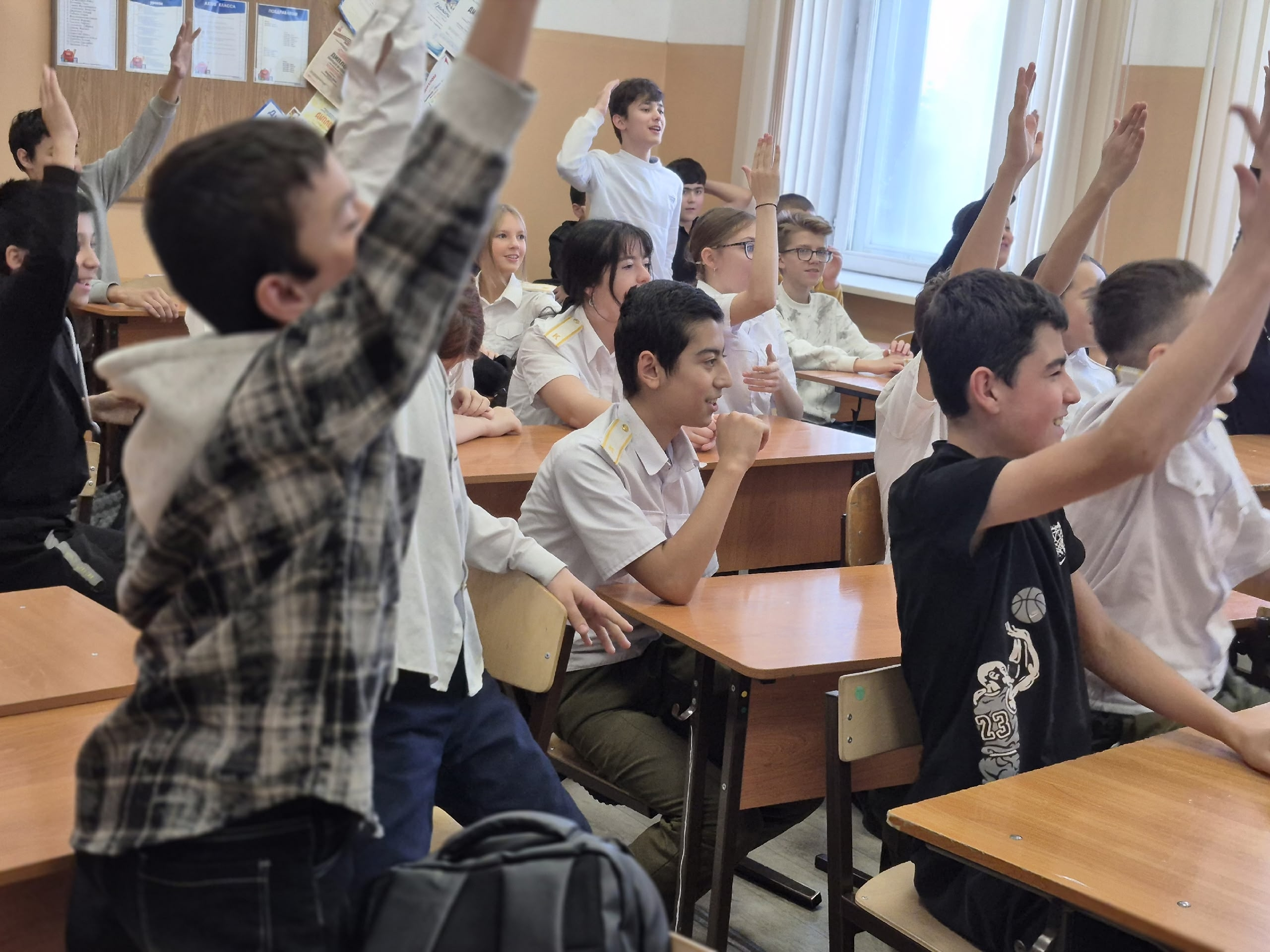Три команды, представляющие 7 «А», 7 «Б» и 7 «К» классы, продемонстрировали знания по истории российского герба, его символике, значении каждого элемента – от двуглавого орла до Святого Георгия Победоносца. Ребята активно отвечали на вопросы, разгадывали головоломки, связанные с геральдикой, и доказывали свое право называться настоящими знатоками истории Родины. Игра прошла в дружеской, но очень напряженной борьбе, каждый класс стремился к победе.