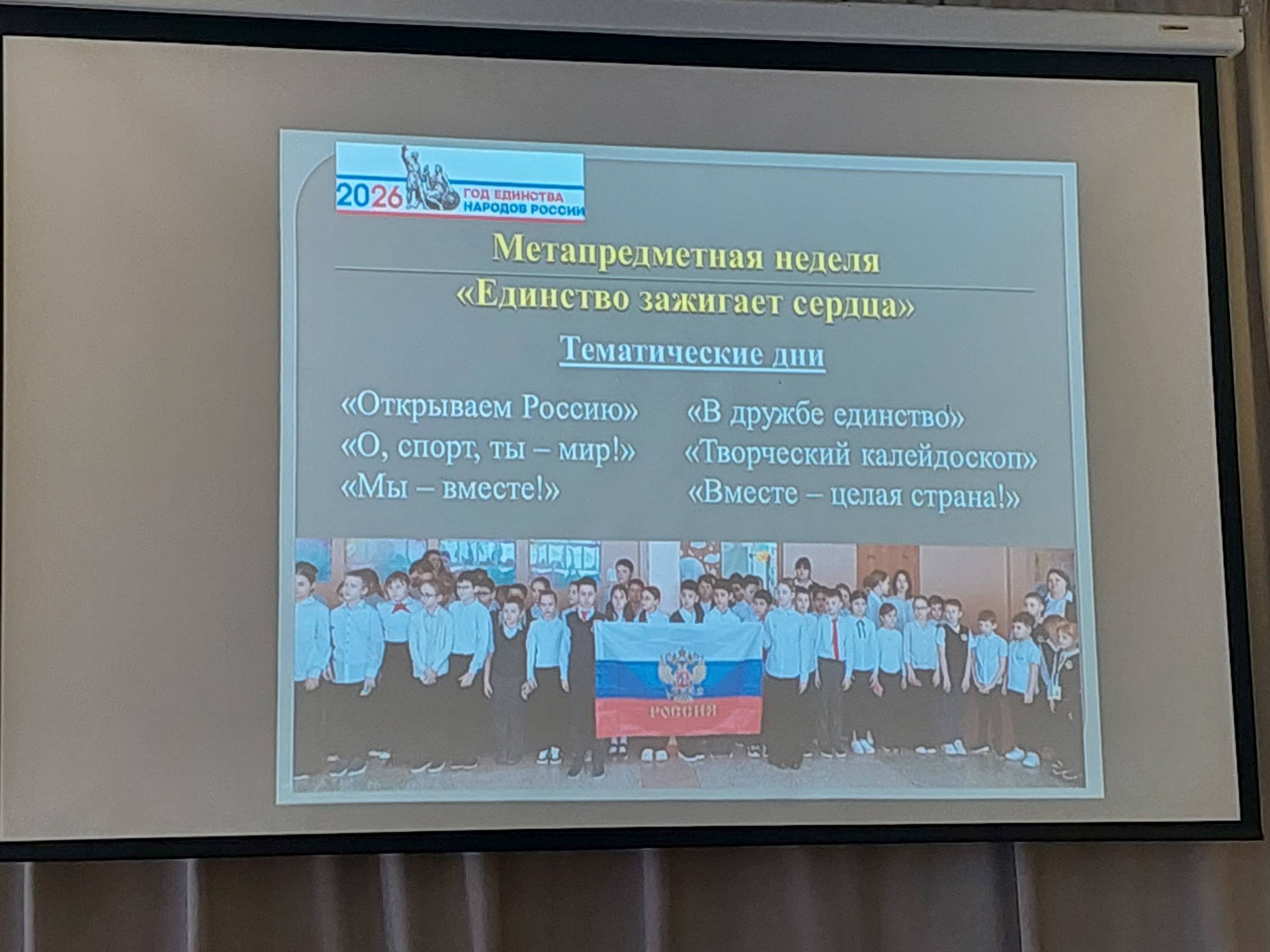 В теоретической части семинара организаторы представили систему работы по реализации инновационного проекта РАО в рамках образовательной деятельности и опыт проектирования тематических дней для гармонизации межнациональных отношений в рамках метапредметной недели «Единство зажигает сердца» в МБОУ СОШ № 122.
