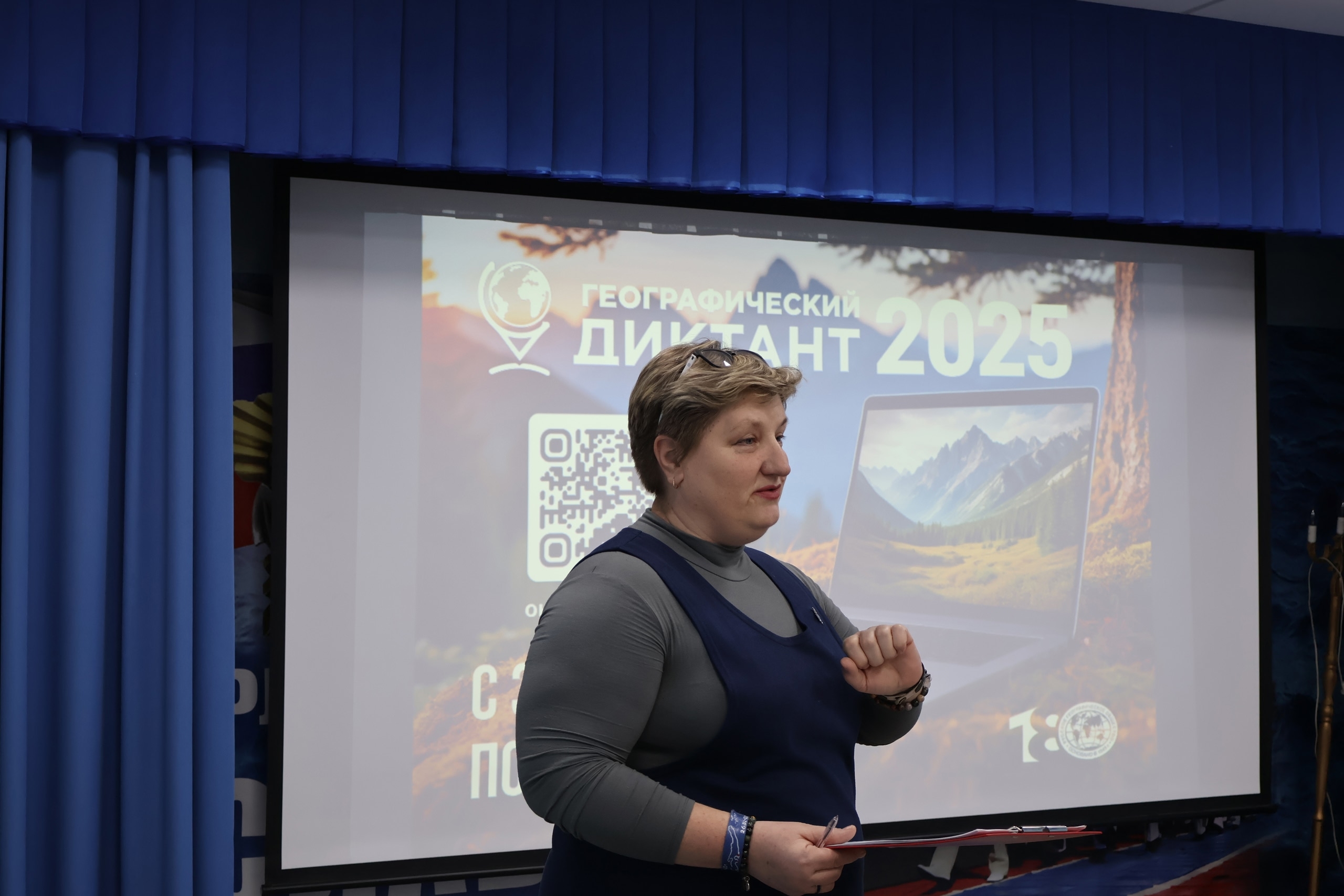 В начале проведения акции участникам раздали бланки и ручки, а также, как и подобает, рассказали правила проведения «Географического диктанта». Вопросы демонстрировались на экране и были озвучены голосами известных деятелей культуры путешественников и экспертов, что добавило увлекательности в процесс проведения диктанта.