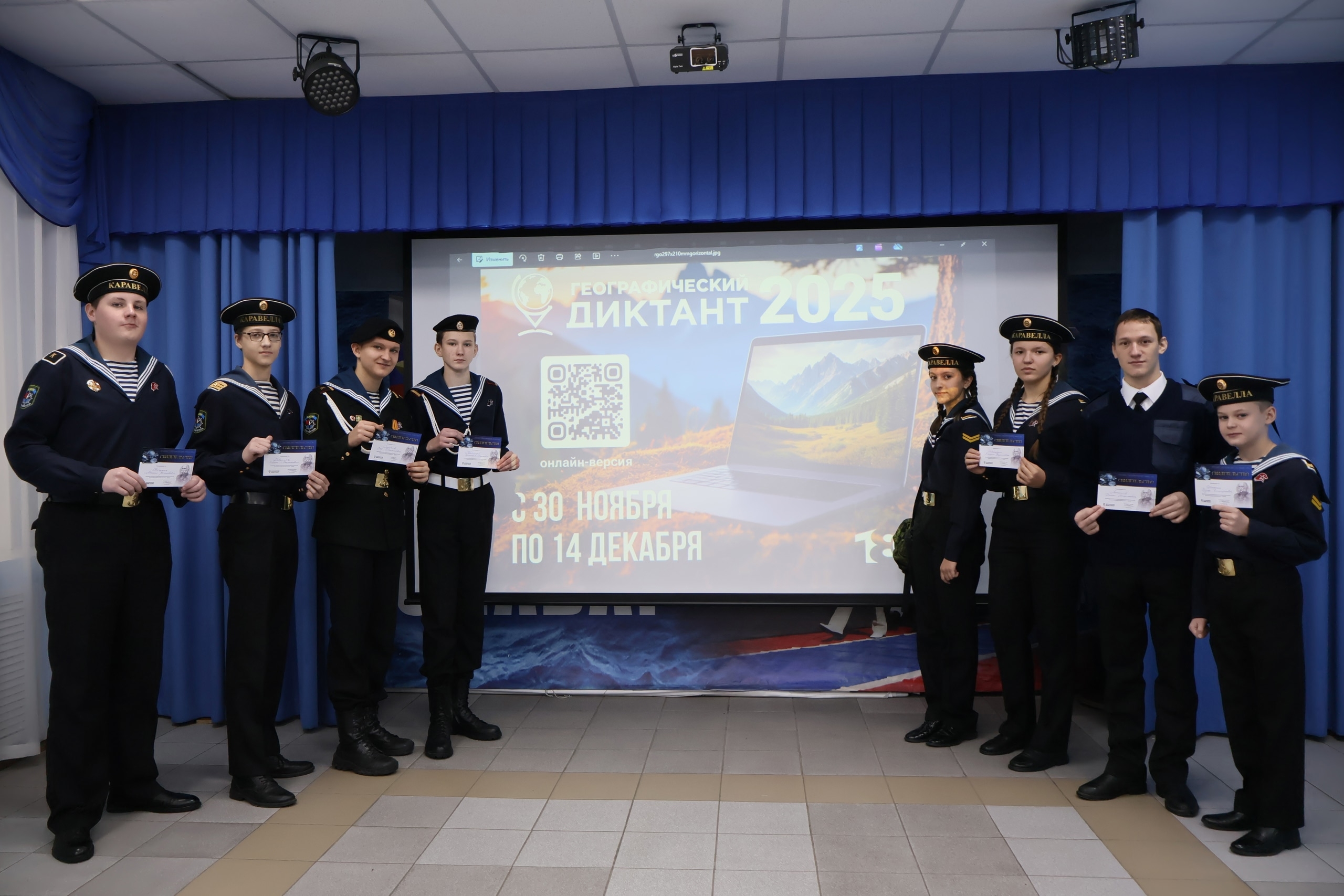 30 ноября на базе Дома Юнармии города Новосибирска, структурного подразделения Детского морского центра «Каравелла», состоялась ежегодная международная акция Русского географического общества «Географический диктант».