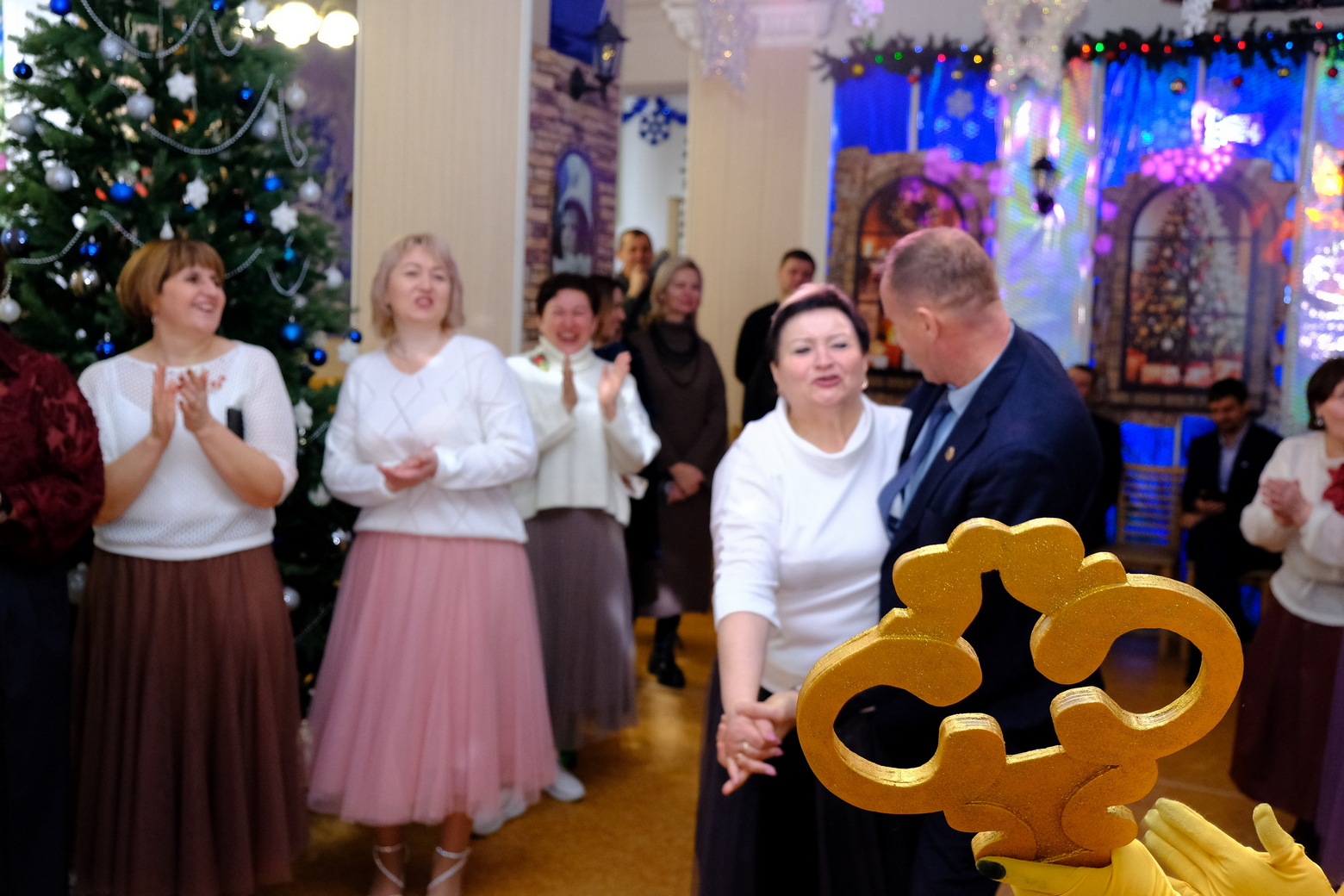 С наступающим Новым годом директоров школ и детских садов поздравила заместитель главы администрации района Анжела Валерьевна Данилова, начальник отдела образования района Светлана Викторовна Парунова, председатель профсоюзной районной организации Вера Алексеевна Дядькина. И, конечно, Дед Мороз и Снегурочка! А еще - герои интермедии «Новогодние приключения Буратино» с педагогами Дома творчества и учащимися театра-студии «Игра» в главных ролях.