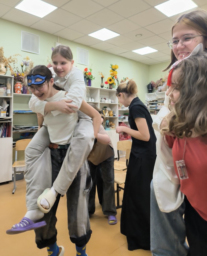 Ребята старшего возраста имели возможность проявить себя в спортивной эстафете, прошли квест «Новогодние приключения», приняли участие в развлекательно-познавательной викторине и чаепитии. Особенно приятно было видеть пришедших к нам на праздник выпускниц художественной школы, а ныне студенток-второкурсниц. Время прошло очень незаметно за приятными беседами.
