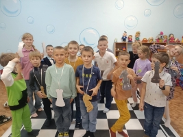 Настоящим украшением программы стала игра «Живые шахматы». Каждый ребёнок примерил на себя роль шахматной фигуры и на большом баннере продемонстрировал, как она двигается по полю. На импровизированной шахматной доске развернулось настоящее сражение – с обдуманными ходами, азартом и смехом. Ребята учились работать в команде, продумывать стратегию и принимать решения. И хотя поединок получился напряжённым, в итоге победила дружба и любовь к шахматам.