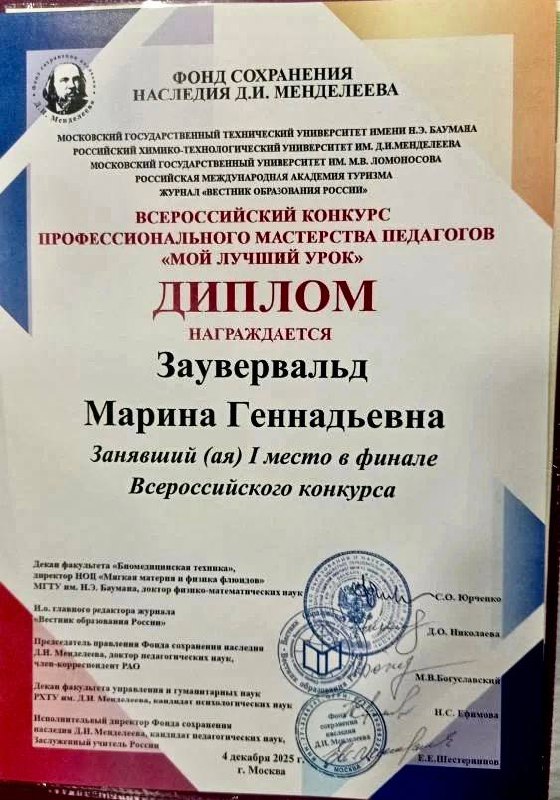 Коллектив лицея № 200, администрация и ученики поздравляют Марину Геннадьевну с выдающимся профессиональным достижением. Эта победа является признанием высокого уровня педагогического мастерства, творческого подхода к преподаванию и преданности делу образования.