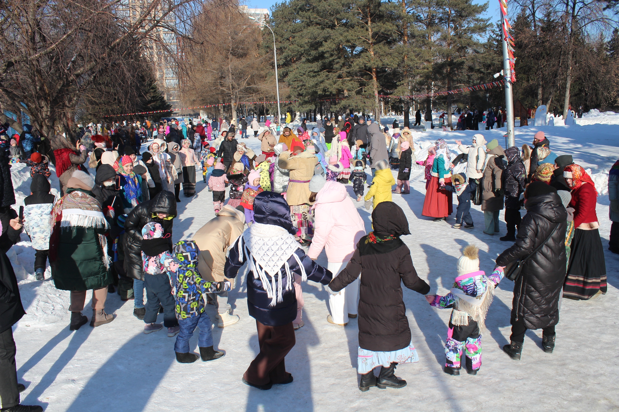 21 февраля Нарымский сквер превратился в эпицентр народного гулянья, где Центр дополнительного образования «Алые паруса» воссоздал атмосферу исконных русских проводов зимы с их самобытным размахом и традиционным гостеприимством. С самого полудня пространство сквера наполнилось праздничным шумом и народными песнопениями, а гостей встречали ожившие герои фольклора – величественный Воевода, статная красавица Масленица и ученый Медведь.