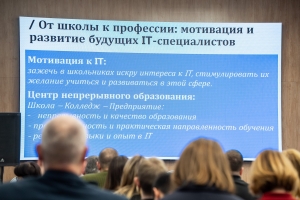Громов Николай Геннадьевич, руководитель центра непрерывного образования ГБПОУ НСО «Новосибирский колледж электроники и вычислительной техники», представил ресурс колледжа для развития IT-компетенций школьников, учителей информатики и информационных модулей технологии. На базе колледжа действует образовательно-производственный центр (кластер) «Информационные технологии», созданный в рамках федерального проекта «Профессионалитет». Цель кластера — подготовить специалистов для предприятий связи и IT-технологий, которые востребованы на рынке труда, с учётом запросов работодателей.