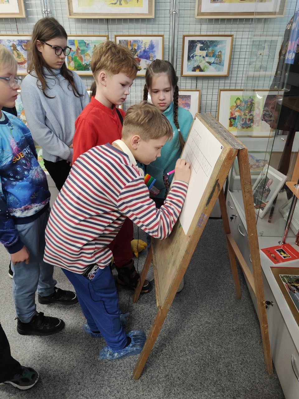 Формат выставки-квеста оказался удачным решением. Это позволило детям активно взаимодействовать с экспозицией, а не просто пассивно наблюдать. Ребята с увлечением выполняли задания, находя ответы на вопросы прямо в иллюстрациях. Такой интерактивный формат сделал экскурсию по-настоящему захватывающей, а также развивающей внимание, наблюдательность и стимулирующей интерес к чтению.