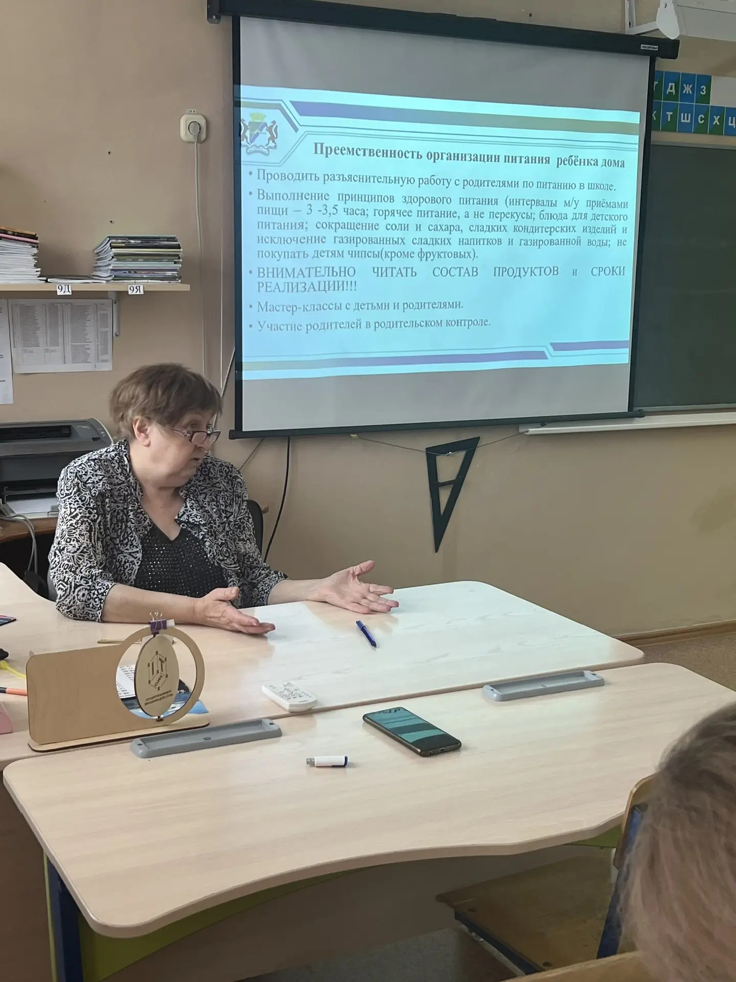 Людмила Александровна Сенина в своем докладе напомнила участникам встречи о принципах здорового питания в общеобразовательных организациях.