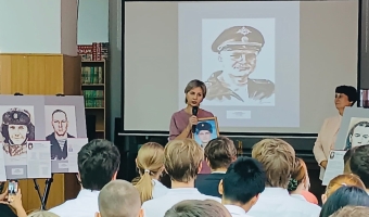У одного портрета ребята стояли особенно долго. Это был портрет гвардии лейтенанта Сергея Бурундукова, выпускника школы № 73. Сергей окончил Новосибирское высшее военное командное училище и сразу после выпуска отправился защищать свою страну. Он участвовал в спецоперации, командуя взводом глубинной разведки.