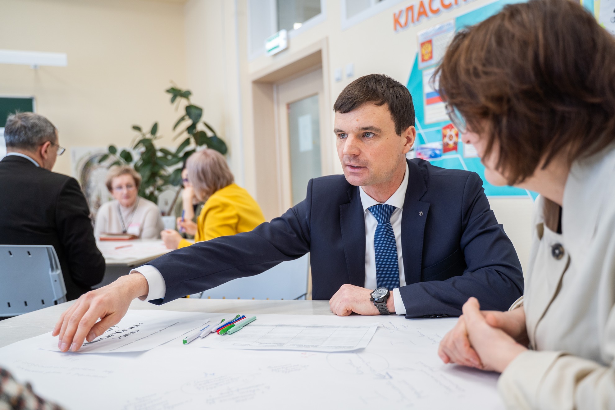 В рамках стратегической сессии в формате «Мировое кафе» участники разделились на малые группы и в командах прорабатывали сценарии улучшения ситуации. Темы для обсуждения: «Школа без обид» (меры повышения эффективности служб медиации, примирения и профилактики травли); «Мы вместе» (раннее выявление семейного неблагополучия); «Школа + Семья = Успех» (внедрение современных методов работы с родителями); «Цифровые риски» (обеспечение безопасности образовательного пространства, в том числе, в цифровой среде); «Обеспечение проектирования программ воспитания («Профилактика и безопасность»)».