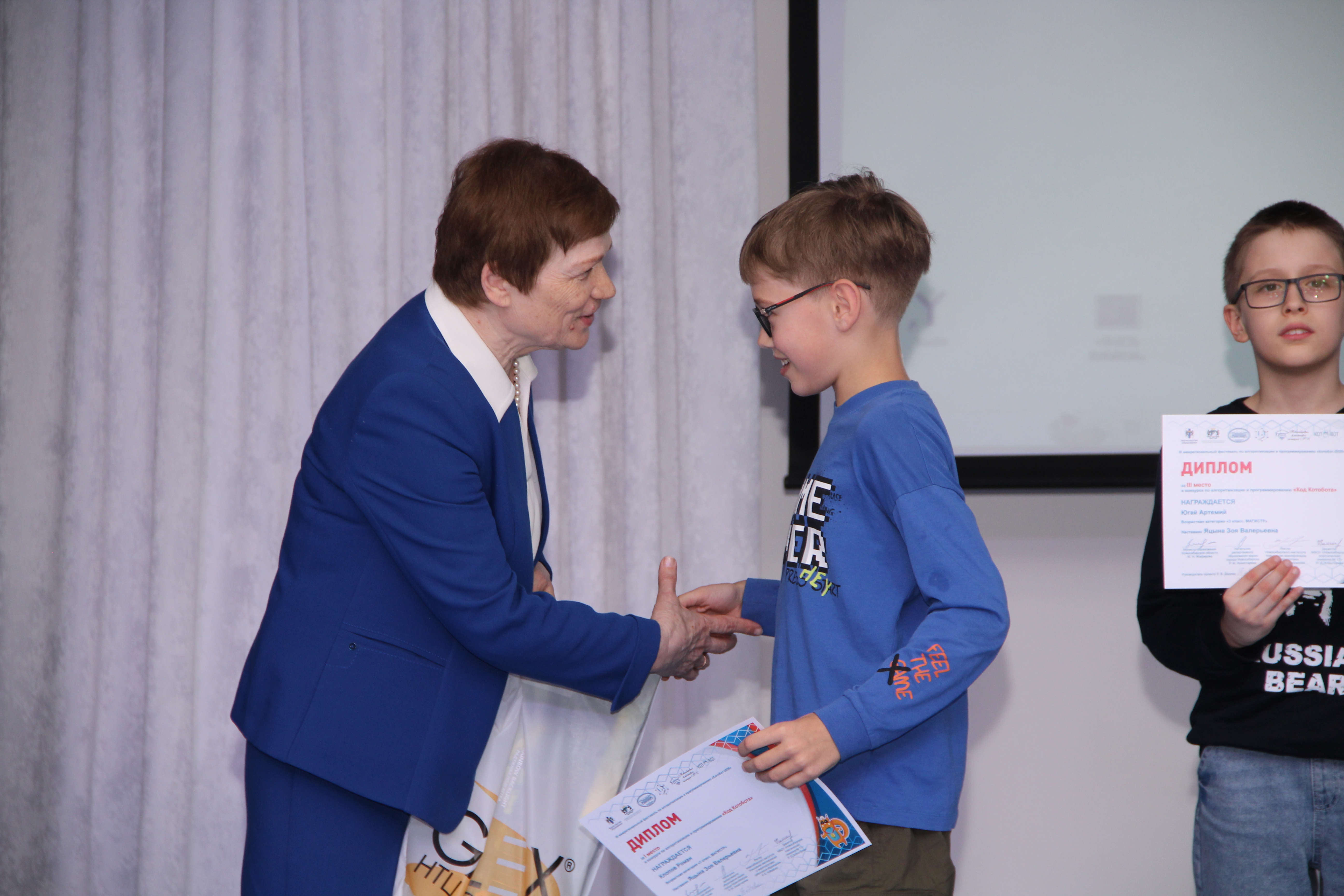Директор Новосибирской классической гимназии № 17, Заслуженный учитель Российской Федерации Нина Демьяновна Кляшторная обратилась к участникам: «Каждый из вас уже сегодня победитель, потому что вы не побоялись сложных задач, нашли время для подготовки и поверили в свои силы. Продолжайте развиваться, и однажды вы сможете изменить мир с помощью кода!»