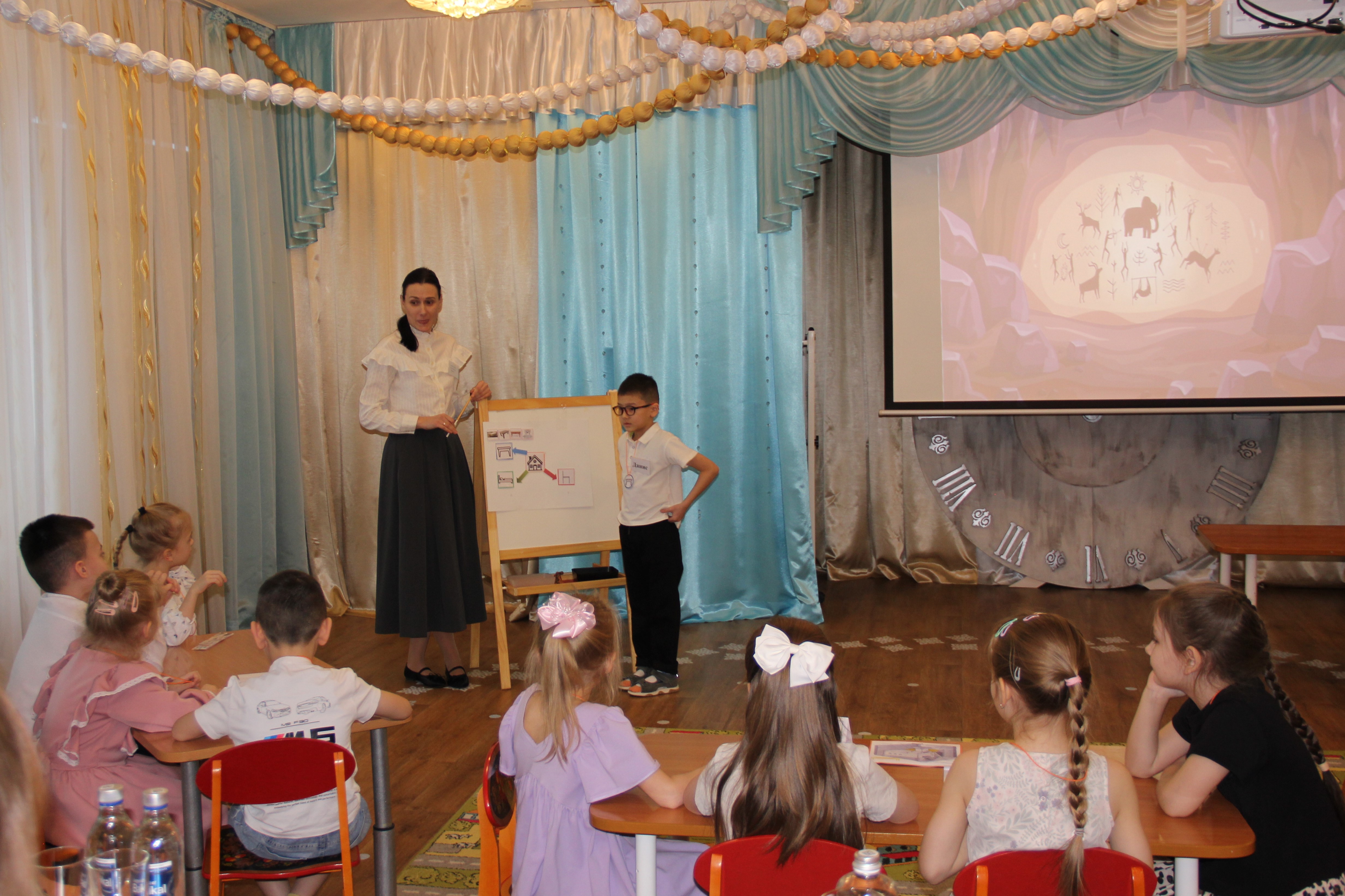 Дошкольники познакомились с обитателями морей и океанов, изучив строение осьминога, акулы, кита и морского конька. С помощью интерактивной книги исследовали подводный мир. Вместе с педагогами совершали путешествие в прошлое, где узнали особенности устройства предметов быта старинной русской избы и историю создания мебели от первобытных времен до современности, с помощью карты-схемы квартиры научились расставлять мебель.