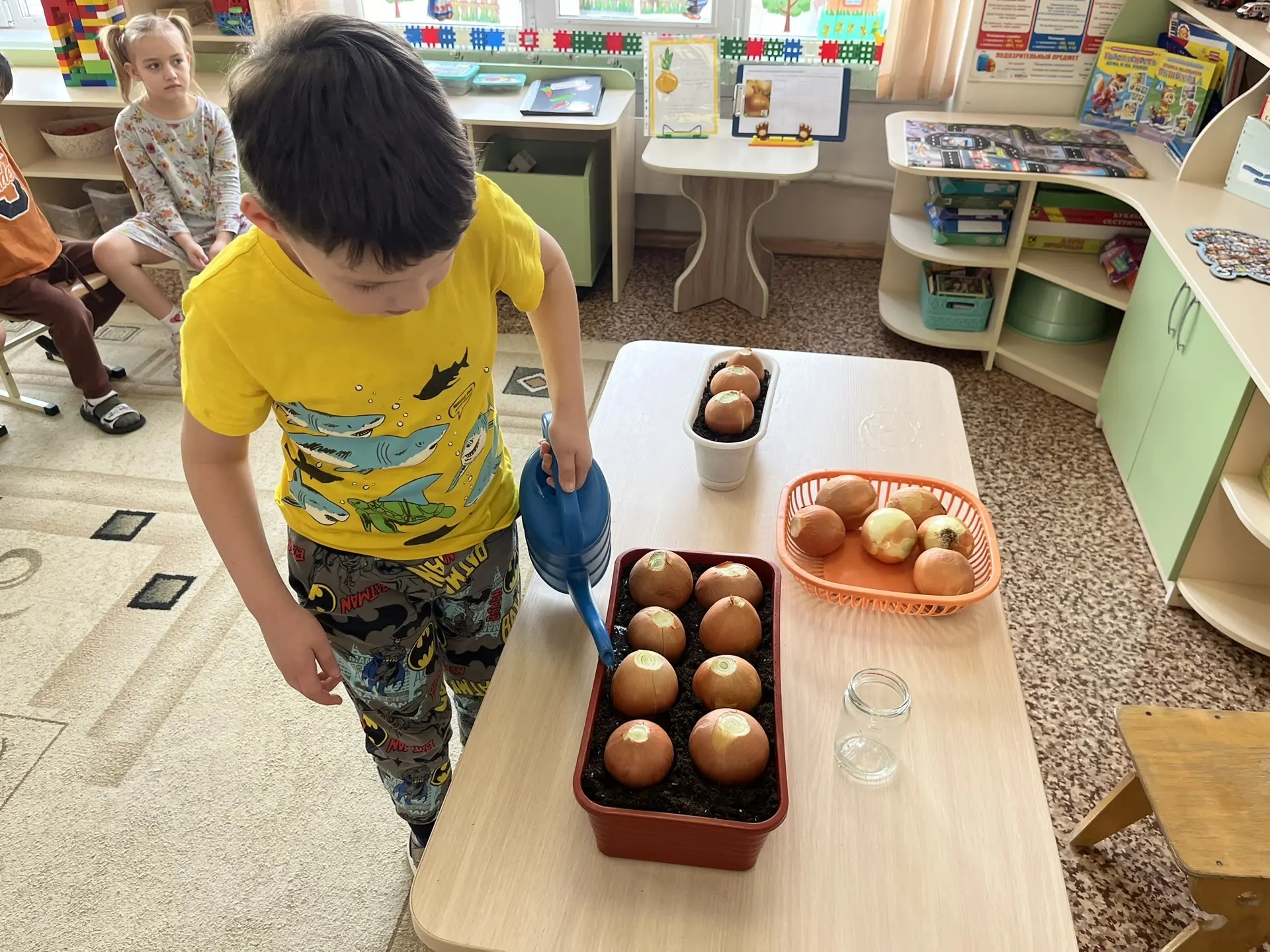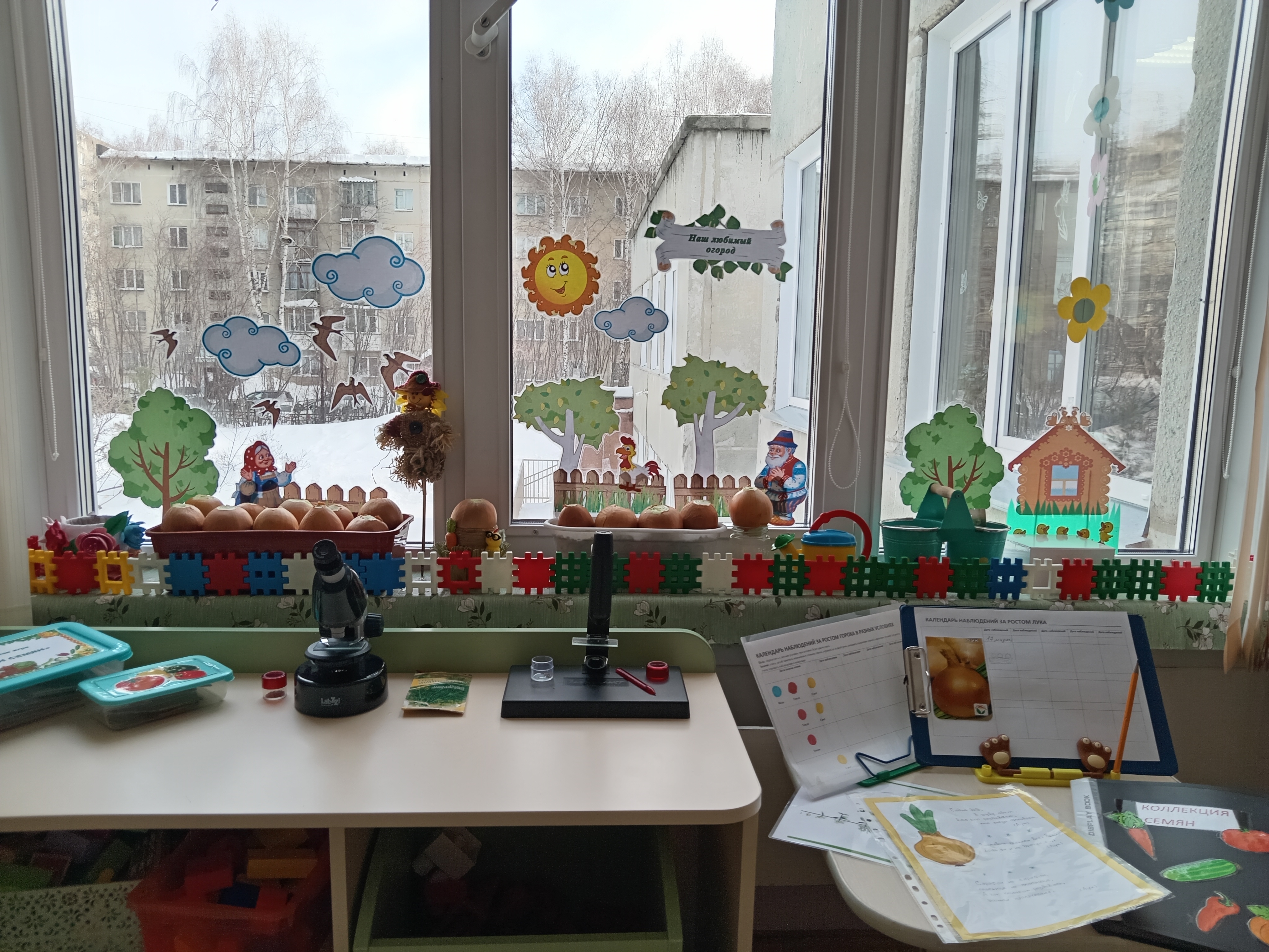 Ребята посадили луковицы и ведут календарь наблюдений: зарисовывают изменения в росте луковых стрелочек. Нет ничего приятнее, чем наблюдать, как первая весенняя зелень поспевает прямо на глазах!