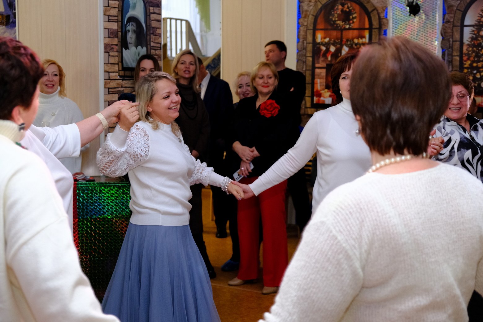 Выступил хор «КЛАССный руководитель». Коллектив возник как объединение директоров образовательных учреждений Ленинского района для подготовки совместного номера в рамках участия в фестивале творчества работников образовательных организаций Новосибирской области «Признание». Под руководством педагога Дома детского творчества им. В. Дубинина Оксаны Олеговны Безъязыковой участники хора исполнили для гостей песню «Три белых коня» из кинофильма «Чародеи» и песню «А снег идет».