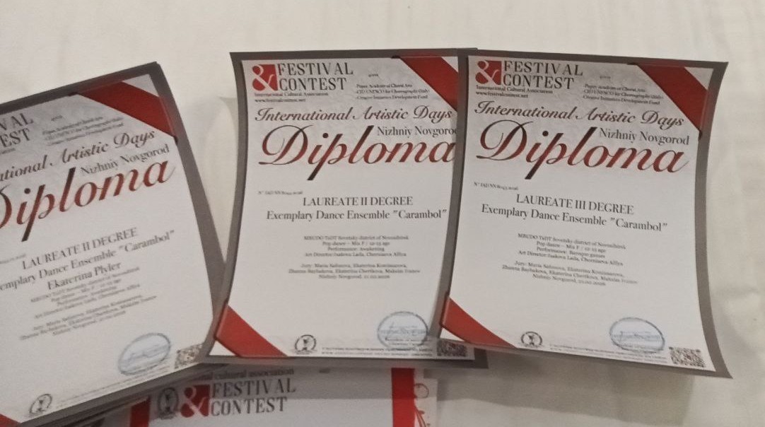 Образцовый коллектив ансамбль танца «Карамболь» ЦДТ Советского района завоевал звания Лауреата II и III степени. Каждый юный танцор получил именной диплом международного образца за 2 и 3 место.