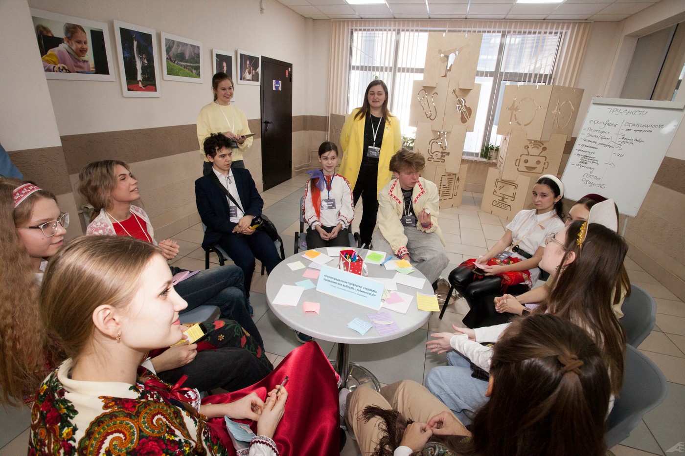 В рамках конкурсного испытания «Дискуссионный» для участников были организованы «Точки смыслов» - семь коммуникативных площадок, которые стали мегапространством общения, обсуждений и обмена оригинальными идеями. Спикеры подготовили самые актуальные темы для школьников и поделились ценным профессиональным опытом.
