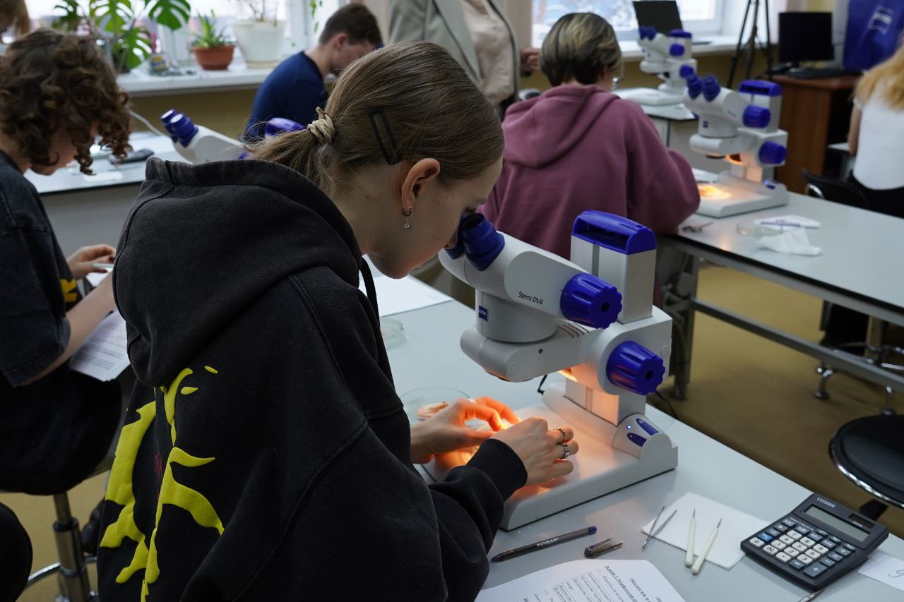 15 января, ребята участвовали во втором практическом туре. Он стал проверкой не только теоретической подготовки, но и навыков, сообразительности и умения мыслить. Участники выполняли нестандартные задания, демонстрируя способность работать с разнообразными биологическими объектами. Это отличная возможность для школьников проявить себя в деле. Они пользовались микроскопами и лупами, пинцетами, гистологическими препаратами, изучали гербарные образцы цветковых растений. Особый интерес вызвала работа с натуральными объектами: тушками и чучелами мелких млекопитающих и птиц, а также муляжами человеческих органов.
