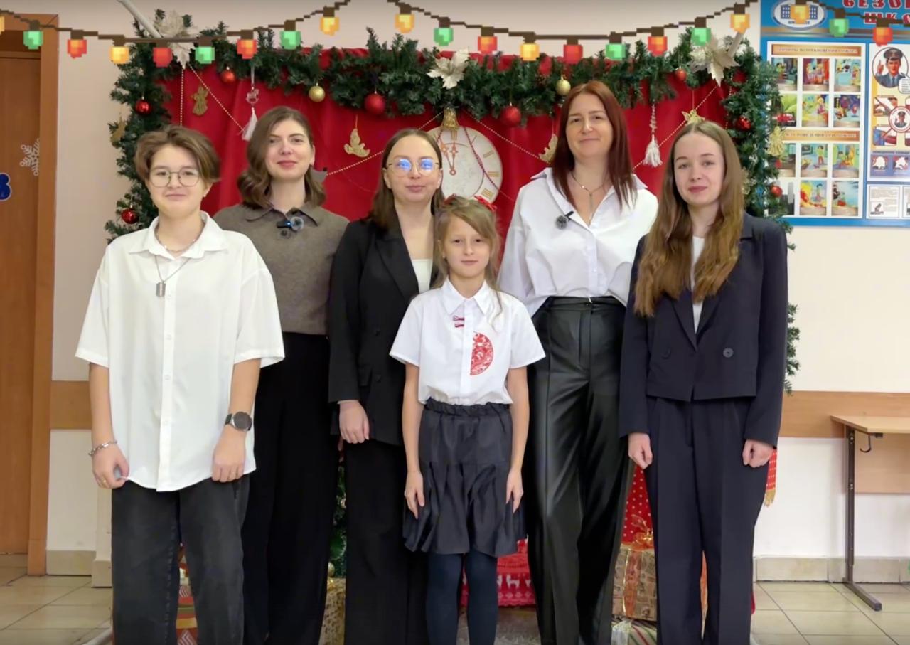 В кадре: Пелипенко Яна 2 «А» класс, Писклова Дарья 6 «А» класс, Костылева Анна 9 «И» класс, а также Елецкая Анна Сергеевна, Заставенко Александра Михайловна, Шевкунова Екатерина Дмитриевна.