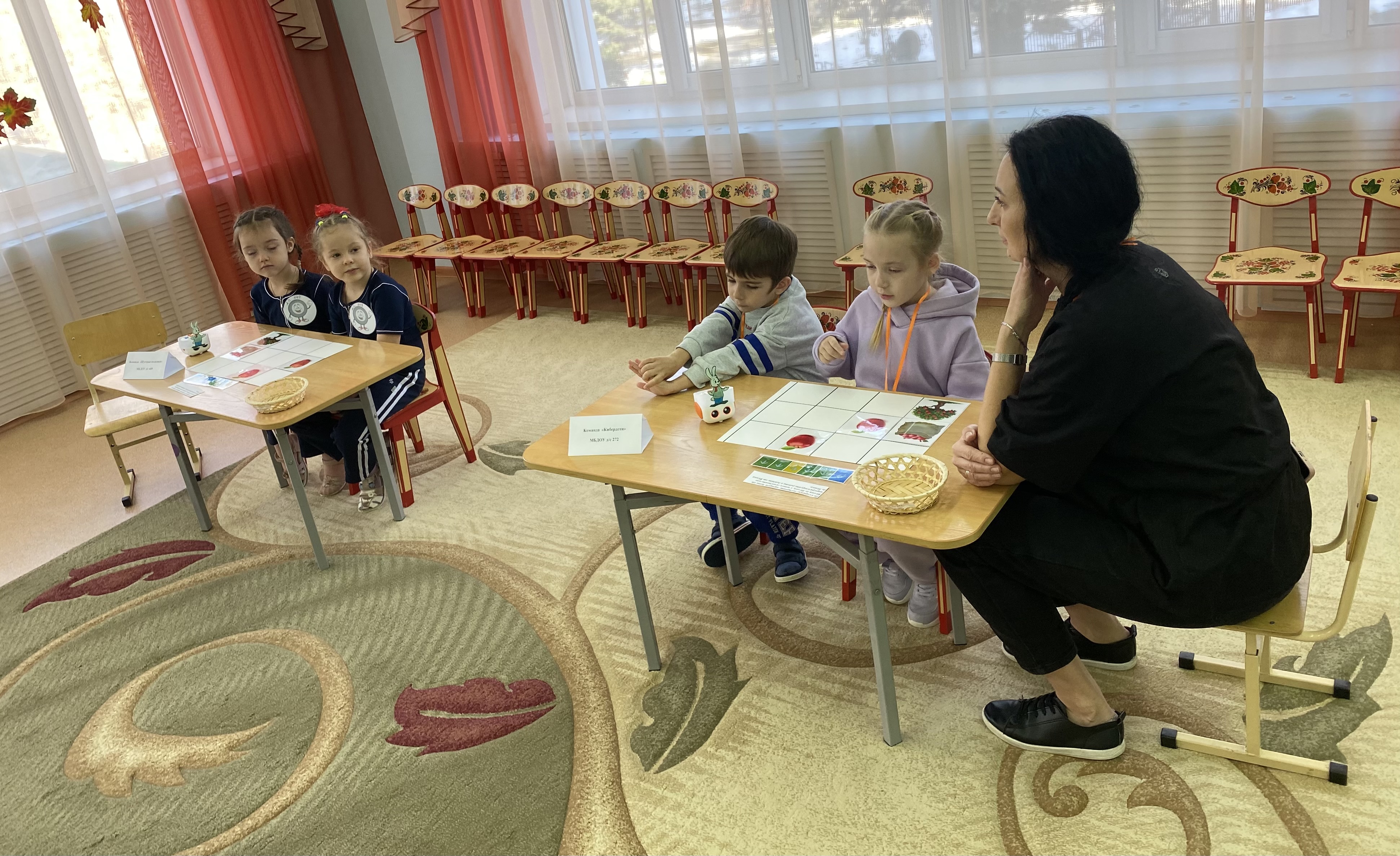 Турнир проходил на четырех площадках детского сада: ребята соревновались в программировании робота Матоша (начальный и продвинутый уровень); в программировании робота Tale Bot, а также в конструировании с помощью игрового конструктора «Cuboro».