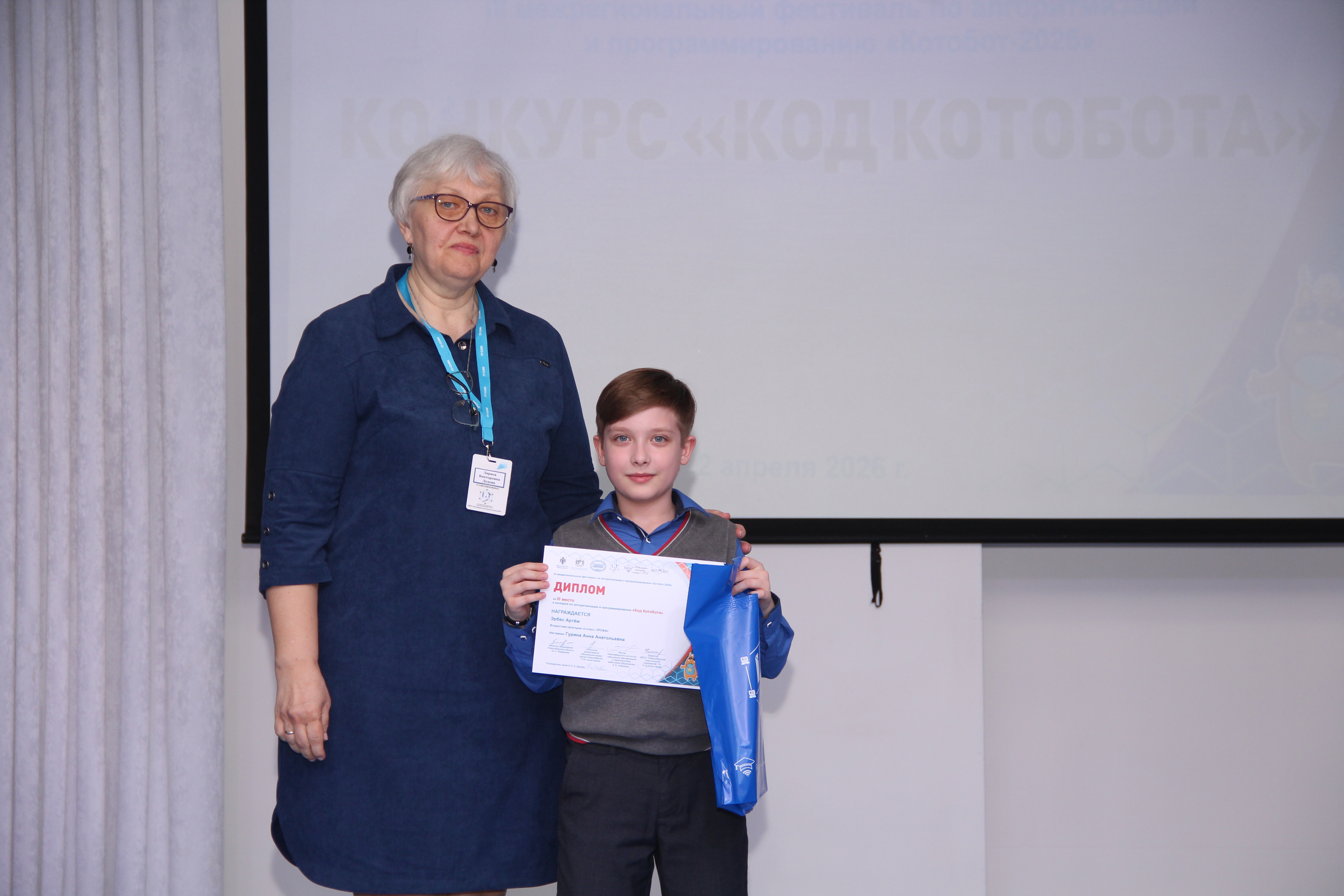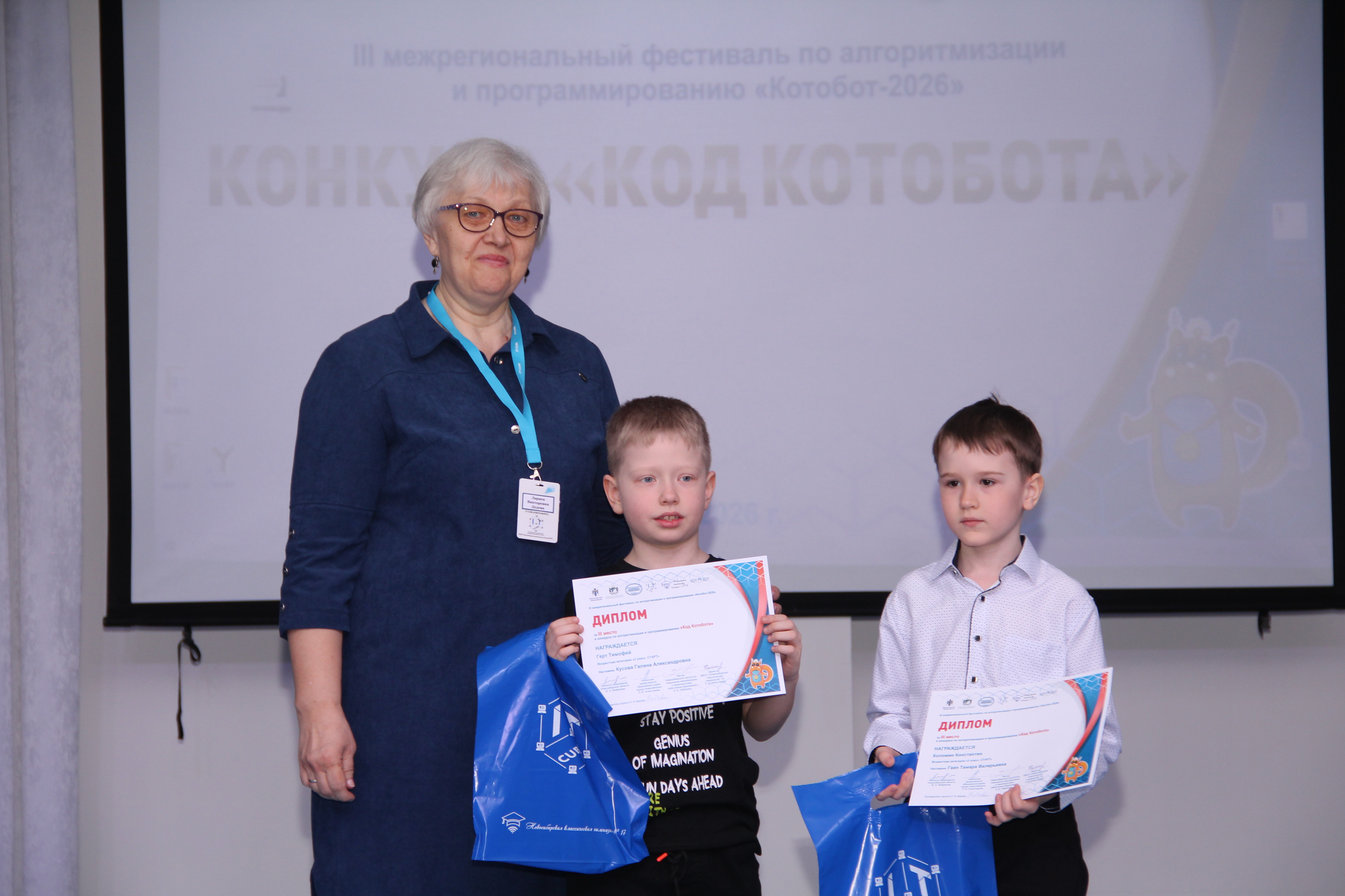 Директор Новосибирской классической гимназии № 17, Заслуженный учитель Российской Федерации Нина Демьяновна Кляшторная обратилась к участникам: «Каждый из вас уже сегодня победитель, потому что вы не побоялись сложных задач, нашли время для подготовки и поверили в свои силы. Продолжайте развиваться, и однажды вы сможете изменить мир с помощью кода!»
