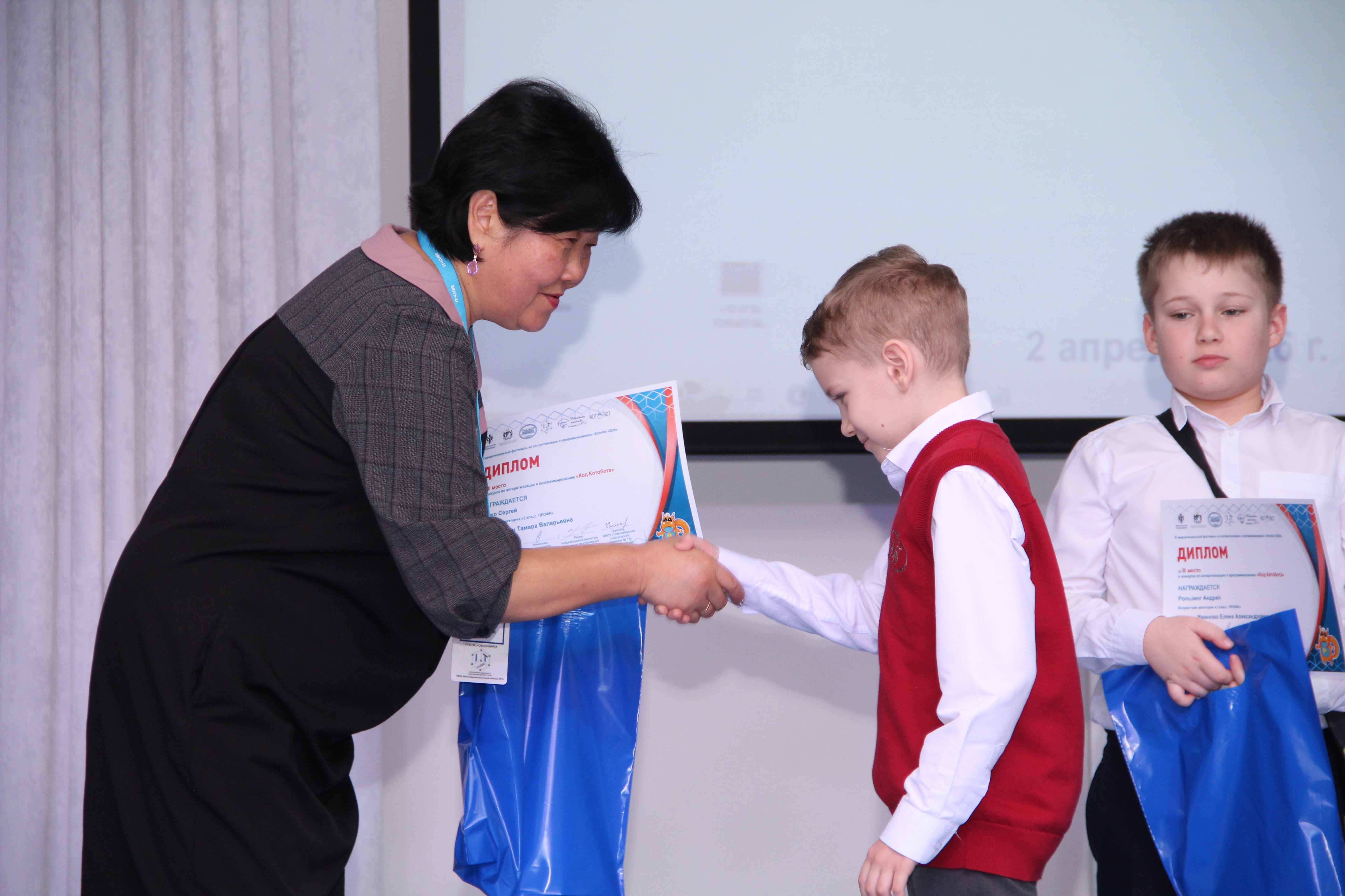 Церемонию открыла Светлана Викторовна Парунова, начальник отдела образования Ленинского района департамента образования мэрии города Новосибирска. Она поздравила самых юных участников и передала слова приветствия от начальника департамента образования мэрии города Новосибирска Рамиля Миргазяновича Ахметгареева: «Дорогие ребята! Вы сегодня доказали, что возраст – не помеха для серьёзных побед. Алгоритмическое мышление доступно каждому, кто любит думать, искать решения и не боится трудностей. Желаю вам не останавливаться на достигнутом и смело идти в мир цифровых технологий!»