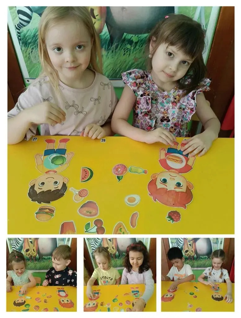 В образовательный процесс и режимные моменты ежедневно включаются беседа о составляющих здорового образа жизни: здоровом сне, прогулках, физической активности и, конечно же, здоровом питании. Для создания наглядности и доступности информации о здоровом питании для всех участников образовательного процесса, в каждой группе педагогами и детьми, с участием родителей, созданы плакат о здоровом питании, дидактические игры.